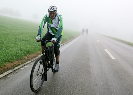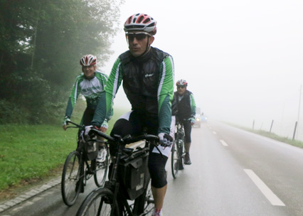 Nach dem ersten Aufstieg in Andwil und Arnegg erwartete uns eine dicke, garstige Nebelsuppe. Die Strassen waren feucht und dreckig von den Traktoren.