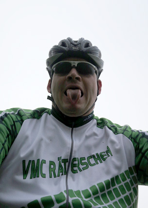 Schon bald mussten wir den Eschliker und den berüchtigten Rüetschberg in Angriff nehmen. Da zeigte sich, wer am besten trainiert oder am wenigsten Speck an den Rippen hatte. Jedoch noch fast matchentscheidender ist, welches Ritzel man montiert hat. während die einen den 19er oder gar den 18er den Berg hoch würgten, hatten Jene mit einem 20er einen gewissen Vorteil. Dafür mussten Diese ihre übersetzung auf der Fläche umso mehr schwirbeln. Am Rüetschberg gibt es mit dem Eingänger nur drei Varianten, entweder man fährt, man schiebt oder man fällt vom Rad! Die Ankunft auf dem Pass wurde mit einem Bier vom Fass gefeiert. Inzwischen hatte sich Edi von seinem Sturz erholt und schwang sich wieder aufs Rad! Gute Taktik Edi, wie früher!
