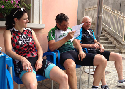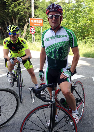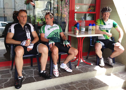 Peter Heydecker und Heinz Steinemann: Zwischenverpflegung und kleiner Schwatz.Links oder rechts? Die Gruppe unterhält sich über den weiteren WegNoch ein kleines Foto von der Aussicht...Peter Heydecker, Heinz Steinemann und Stefan Widmer: Kleine Erfrischungspause bei der grossen HitzeDie ganze Gruppe unterwegsZwischenziel in San Marino erreicht: Denise Lingua, Päde Ettlin und Heinz SteinemannWarten auf die Weiterfahrt: Heinz Steinemann, Stefan Widmer, Marcel Pfister und Claudia MeierHeinz Steinemann: Bereit für die WeiterfahrtAndi Meier: Immer bereit mit einer alternativen RouteKaffee-Pause am letzten Tag: Marianne Gebhardt, Stefan Widmer, Torsten Gebhard und Heinz SteinemannDenise Lingua, Päde Ettlin und Edi Schärer: Wie gehts nun weiter...Edi Schärer: schön geschmückt wie eine Kuh auf dem AlpabzugStrand von Cesenatico: Die einen getrauten sich sogar ins Meer