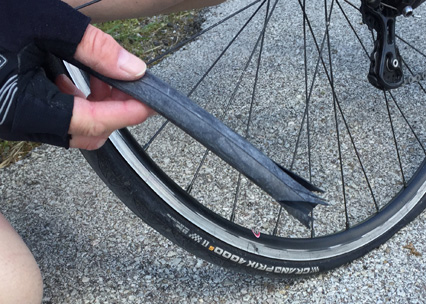 Auf Wunsch von Stephan führte die Mittwochs-Tour Richtung Novafeltria und Perticara. Oben angekommen führt der Weg weiter über die Krete. In einer Bautelle auf der kurvigen Strecke hat es dann plötzlich laut geknallt. Beim anschliessenden Stopp musste Stephan feststellen, dass es seinen Schlauch richtiggehend verrissen hat. Kurzerhand wechselte er diesen und weiter ging die Fahrt.