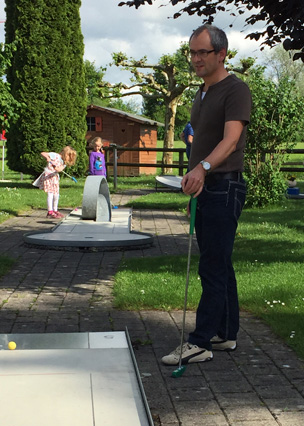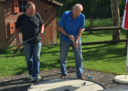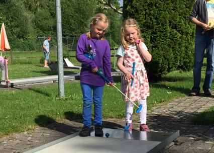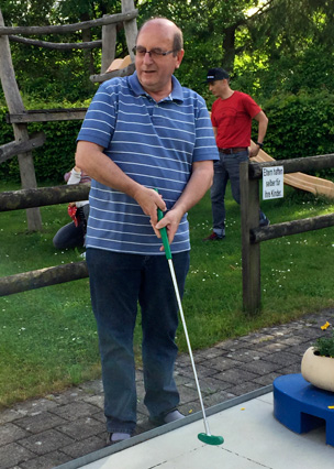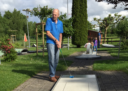 Edi: Wo muss jetzt der Ball genau hin?Heinz, analysiert genau und sucht den richtigen WegGirl-Power: zu zweit gehts am bestenUnd wenn doch nicht klappt, hilft noch der PapaGusti ist gelassen nach den ersten BahnenHeiri hatte bei den ersten Nindernissen noch SchwierigkeitenAuch unser Präsi Tom zeigte was er kannWapf und Edi: Ratschläge oder Besserwisserei?Vater gegen Sohn: Wer gewinnt?Gemütliche Runde nach dem "strengen" Minigolf: Heiri, Clemens und RenéStärkung nach dem Spiel mit dem Grossvater
