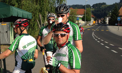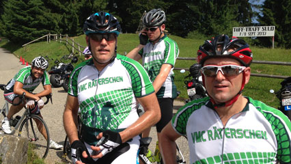 Früh war es am letzten Samstagmorgen, als sich elf wackere VMCler (leider ohne unseren Chauffeur und EhrenPräsidenten) auf den Weg nach Koppigen im Emmental machten. So konnten wir schon vor 8.00 Uhr auf unsere Rennvelos und die ersten Kilometer bei angenehmen Temperaturen geniessen. Nach den ersten kleineren Steigungen folgte nach rund 40 Kilometern der Aufstieg zur Fritzenflue. Die einen nahmen die Steigung etwas gemütlicher, die anderen konnten nun nicht mehr zurückgehalten werden. Doch bei der Verpflegung in Sumiswald waren wir alle wieder beisammen.