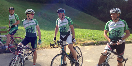 Anschliessend rollten wir mit zügigem Tempo auf die Steigung des Schallenbergs zu. Hier spürten wir nun, dass es richtig heiss wurde und der Schweiss floss allen nur noch runter. Jeder war Glücklich, als er oben ankam und freute sich auf die rasante Abfahrt. Auch dieses Mal war die Gruppe nach dem Verpflegungsposten wieder komplett.