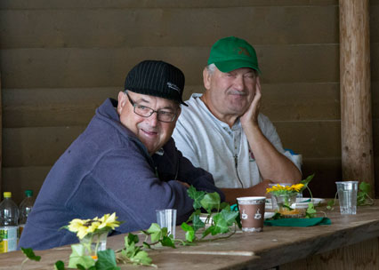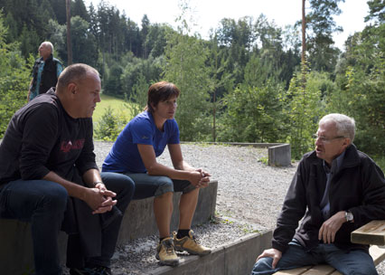Wer kümmert sich um das Fleisch auf dem Grill: Familie MeierIntensive VMC-Gesprächsrunde mit Torsten, Marianne, Heiri und GustiRené und Clemens betrachten das Geschehen aus der FernePeter, Claudia und Torsten am FachsimpelnLadina und Mischa: Auf der Suche nach Heuschrecken?Gar nicht so einfach: Heuschrecken-Suche in der WieseLeony, Mischa und Ladina sorgten dafür, dass immer etwas los warMilitärradfahrer: Heinz, Peter und Stephan am Durstlöschen