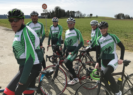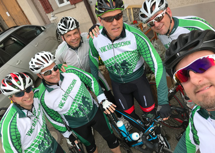 Bei wunderbarem Wetter und toller Aussicht wurde gestern Samstag die VMC-Gümmeler-Saison eröffnet. Sieben VMCler trafen sich zur meist gemütlichen ersten Ausfahrt. Die Tour führte uns Richtung Matzingen und anschliessend nach Märstetten. Zwischendurch konnten wir immer wieder eine tolle Aussicht auf den Alpstein und andere schneebedeckte Gipfel geniessen. Natürlich liess es sich der eine oder andere nicht nehmen, bergauf oder auf einer Geraden auch einmal ein bisschen Gas zu geben. Dann zog sich die Gruppe etwas in die Länge, doch nach einem kurzen Stopp waren alle wieder beisammen. Teilweise war das Tempo so hoch, dass Hägi in einer Steigung seine Kollegen nicht mehr auseinanderhalten konnte. Das war dann auch der Zeitpunkt für eine kurze Rast auf dem Iselisberg. Hier konnten wir unseren Durst nochmals löschen um anschliessend dem Heimweg anzutreten.
