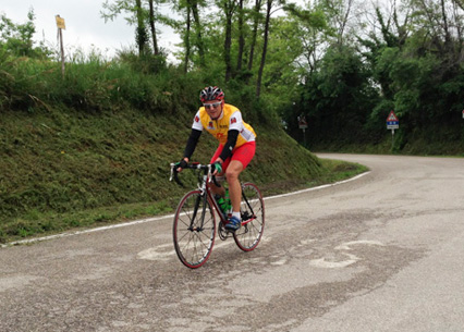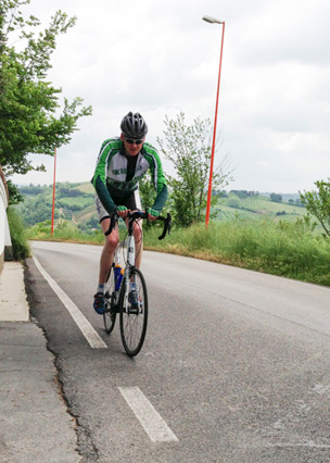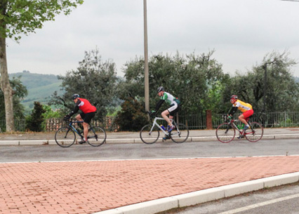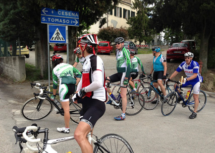 Am Dienstag waren die Wetterprognosen genau so verwirrend wie am Vortag. Aber auch der Blick aus dem Fenster brachte und nicht weiter. Somit entschieden wir uns ein weiteres Mal die Tour nach dem Wetter zu richten. Also starteten wir Richtig Cesena. Unterwegs erwischten uns noch einige Regetropfen, danach zeigten sich aber schon die ersten blauen Flecken am Himmel. Nach dem wir noch kurz vor der Autobahn die Auffahrt verlassen konnten führte uns Peter Heydecker auf eine Route, die für alle neu war. Auf einer schönen Strasse, mit toller Aussicht fuhren wir Richtig San Tomaso. Auch dieses Mal strampelten wir über eine leicht coupierte Strasse der Krete entlang. Nach einer fast 20%igen Abfahrt folgte der fast so steil Aufstieg (bis zu 12%) nach Monteleone, welcher mit vielen Kurven scheinabr nicht enden wollte. Die anschliessende Abfahrt brachte uns nach Montiano, wo wir am Vortag einen tollen Ort für einen Zwischenhalt gefunden haben. Der Heimweg führte uns noch über Longiano. Auf den letzten Kilometern folgte dann das "Finale". Keiner schenkte dem Anderen etwas. Schlussendlich lancierte Marcel Fässler den Sprint und wurde nur noch von Peter Heydecker abgefangen. Wir Anderen hatten das Nachsehen, oder einfach keine Kraft mehr.